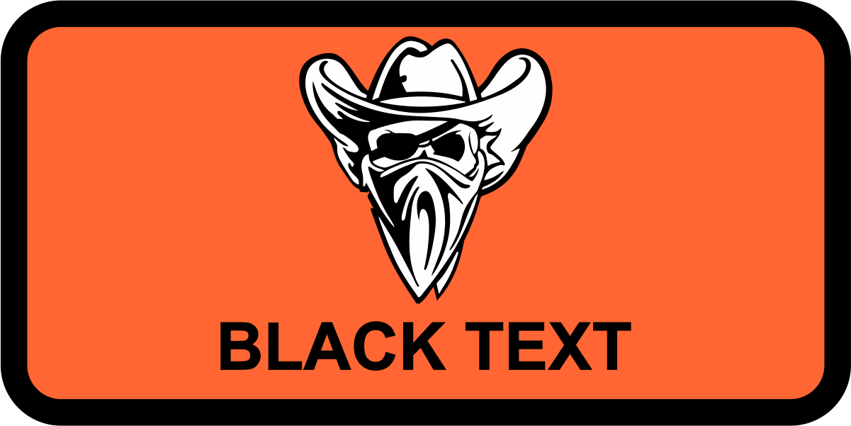 Hill AFB 514 FLTS Cowboy Name Tag - Orange background, Black Border, Black Text, Black/White Cowboy Logo