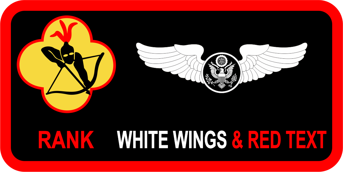 Holloman AFB 429 ATKS Friday Name Tag-  Black Background, Red Border, White Wings & Red Text, Bow & Arrow in a Cloud Logo