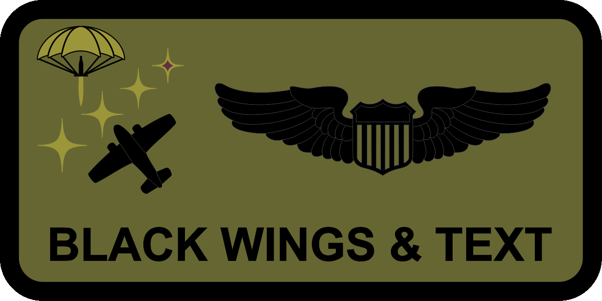 Hurlburt Field 492 SOW  Name Tag  - OD Green Background, Black Border, Black Wings & Text, Parachute with Sword, Stars & Black Aircraft
