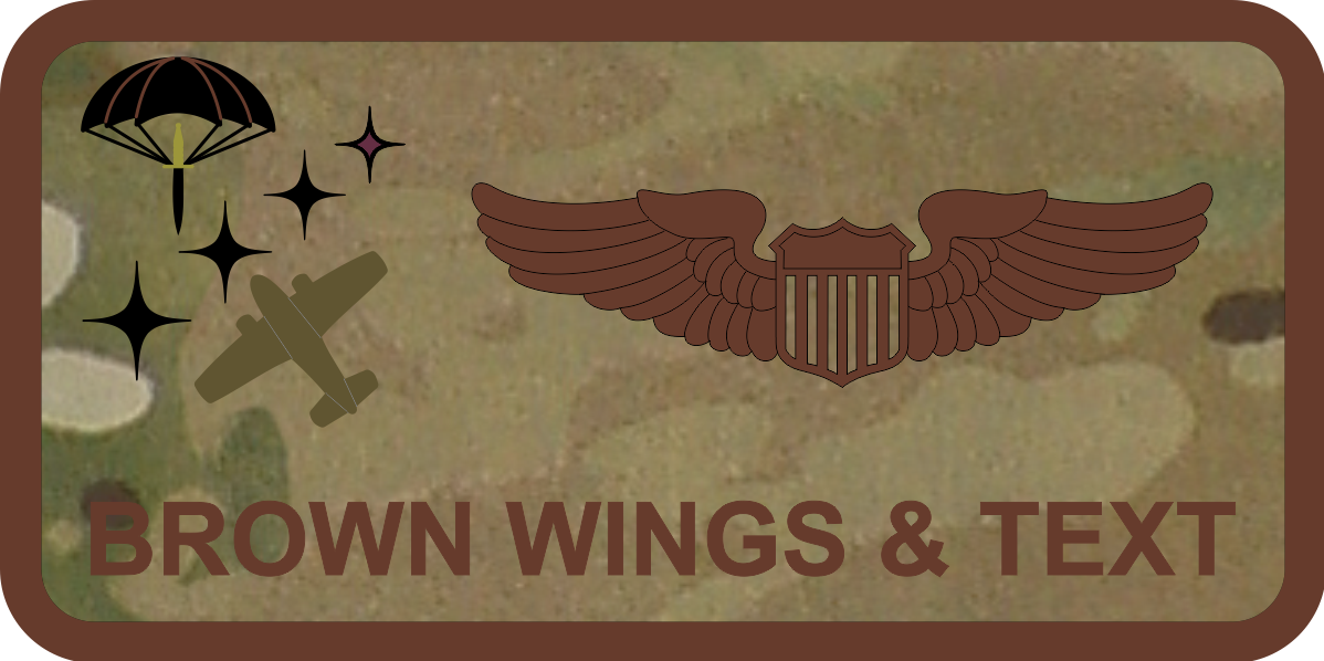 Hurlburt Field 492  Name Tag  - OCP Background, Brown Border, Brown Wings & Text, Black Parachute with Sword, Maroon Star & Olive Drab Aircraft