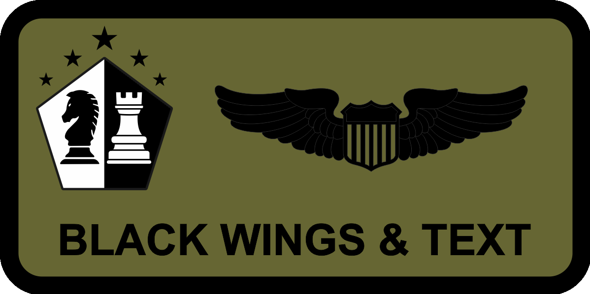 Hurlburt Field 14 WPS Name Tag - OD Green Background Black Border Black Wings & Text, Knight & Rook inside Pentagon Logo