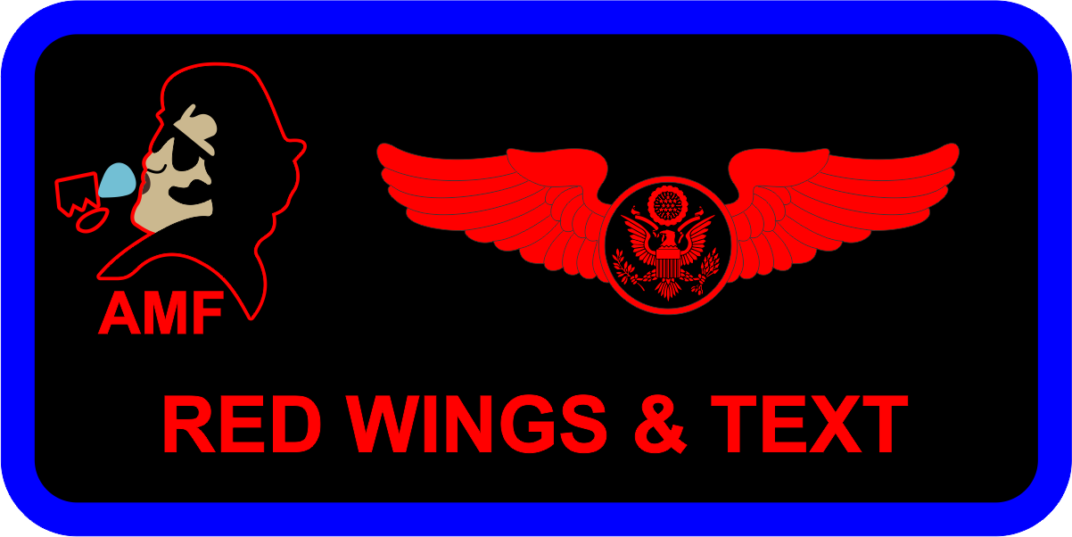 Laughlin AFB 47 STUS - Name Tag - Black Background, Blue Border, Red Wings & Text, Elvis Logo