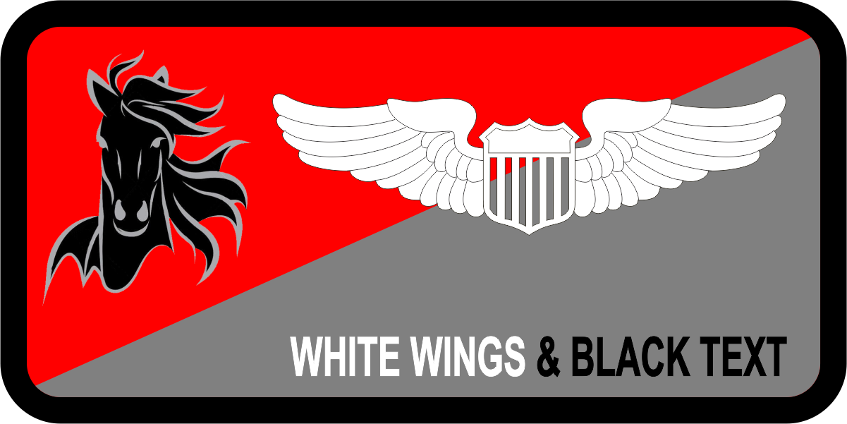 Laughlin AFB, 47 STUS Name Tag - Half Red and Half Gray Background Black Border, White Wings & Black Text, with Black/Gray Horse Head Logo