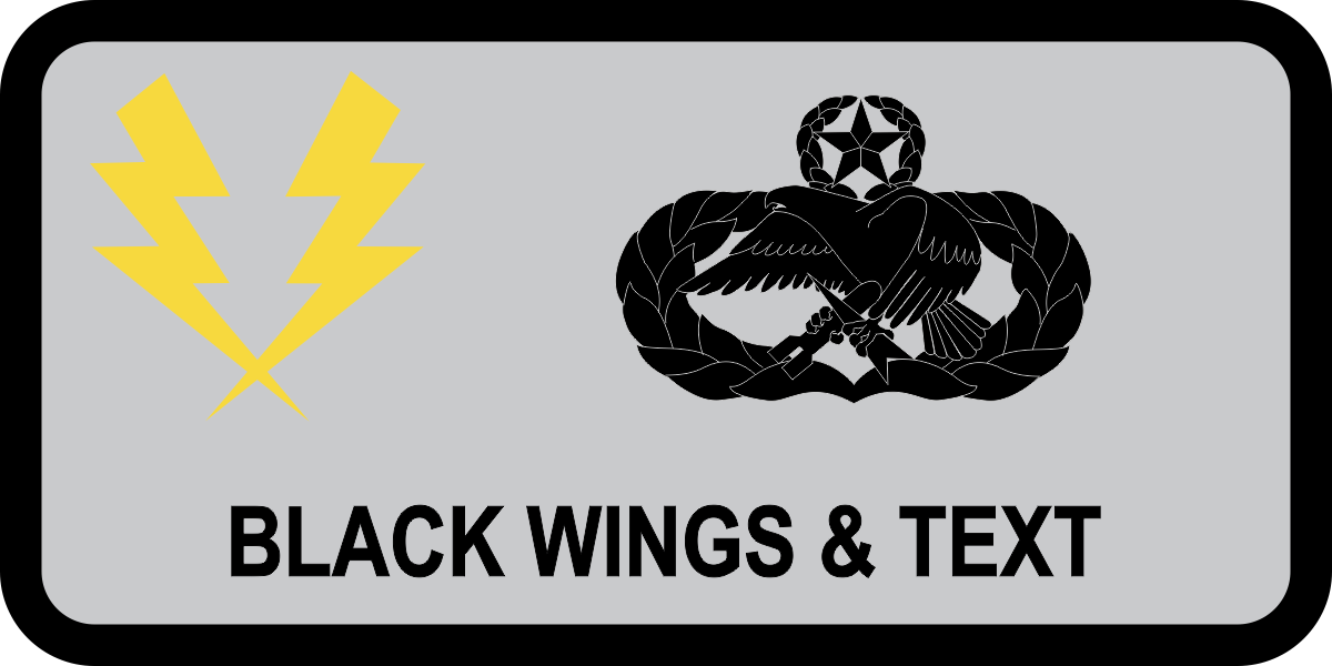 Laughlin AFB 47 STUS - Name Tag - Gray Background, Black Border, Black Wings & Text, Yellow Lightning Bolts