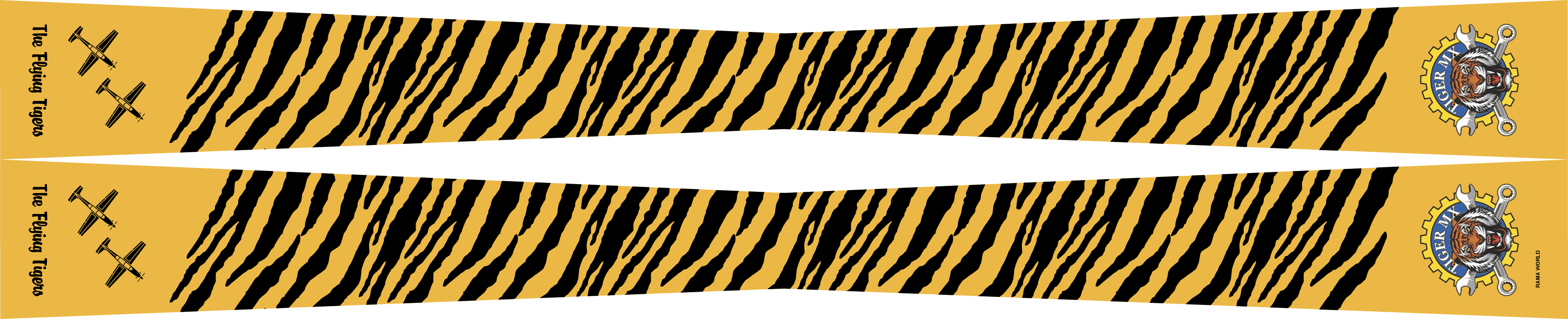 Laughlin AFB 85 FTS Tiger MX Yellow & Black Tiger Stripe Flight Scarf, With T-6 Aircrafts on one end & the Tiger MX Patch on the Opposite End. Size: 4" x 2" x 48".