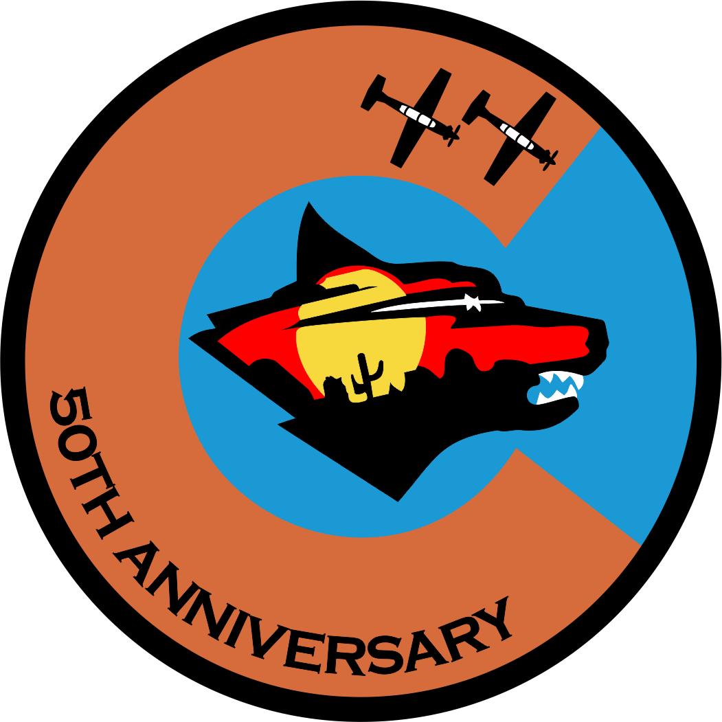 Laughlin AFB A Flight - 85th FTS 50 Year Anniversary, Desert Coyote, Black/White Aircraft, Orange Background, 3.5" Patch
