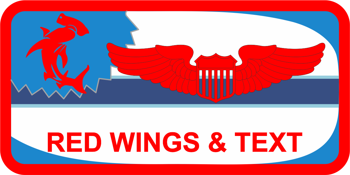 Laughlin AFB 86 FTS-  Blue & White Background, Red Border, Red Wings & Text with Hammer Shark Logo on the Left