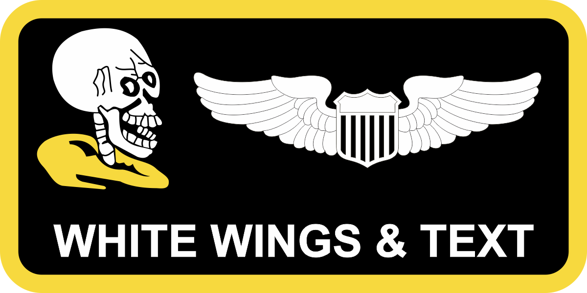 Laughlin AFB, 86 FTS Name Tag - Black Background Yellow Border White Wings & Text, with White Skull Logo