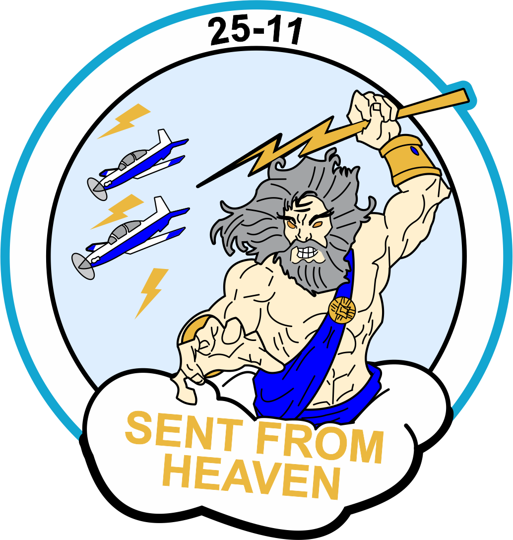 Laughlin AFB 47 STUS Class 25-11 - Lt Blue Background, Blue Border, Zues, T-38 Aircraft, Gold Bolt, Sent From Heaven Patch 3.5"