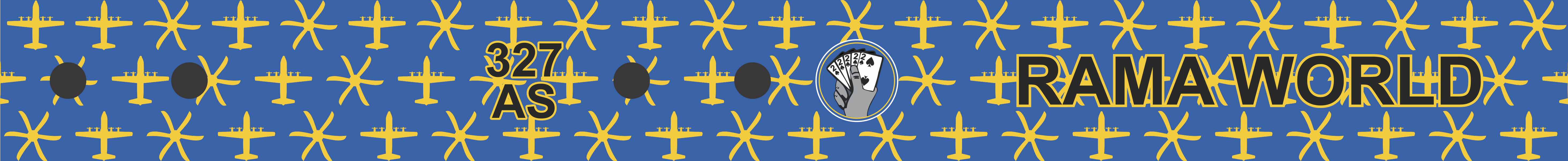 Little Rock AFB 327 AS Blue Background, Yellow C-130's with Alternating Props, Logo with 327 AS Text.