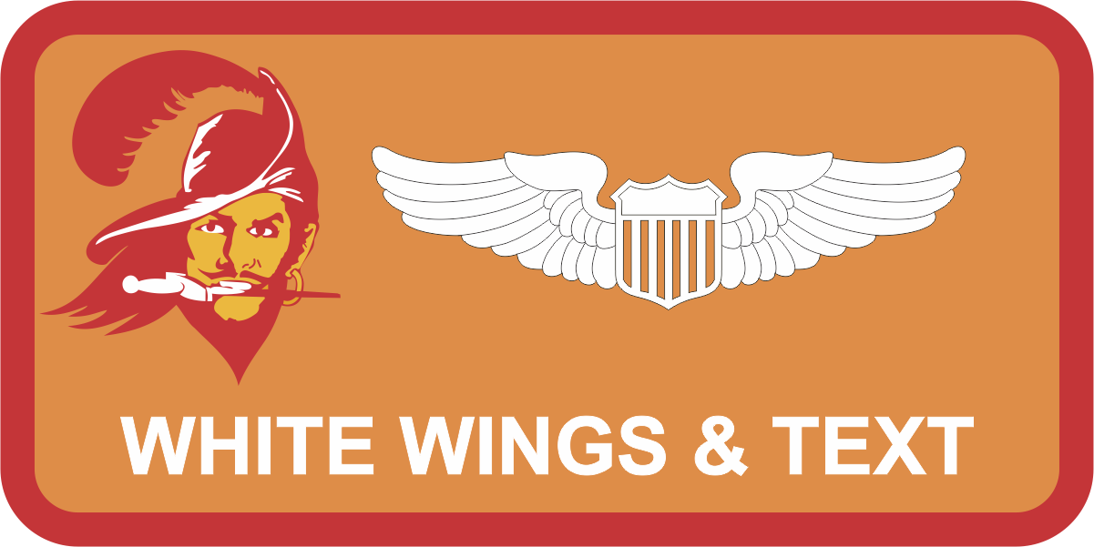 MacDill AFB 63 ARS Buccaneer - Orange Name Tag - Orange Background, Red Border, White Wings & Text, Buccaneer Logo