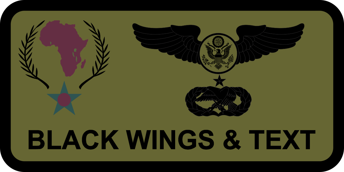 USAF Africa Name Tag - OD Green Background Black Border Black Wings & Text with USAF Africa Logo