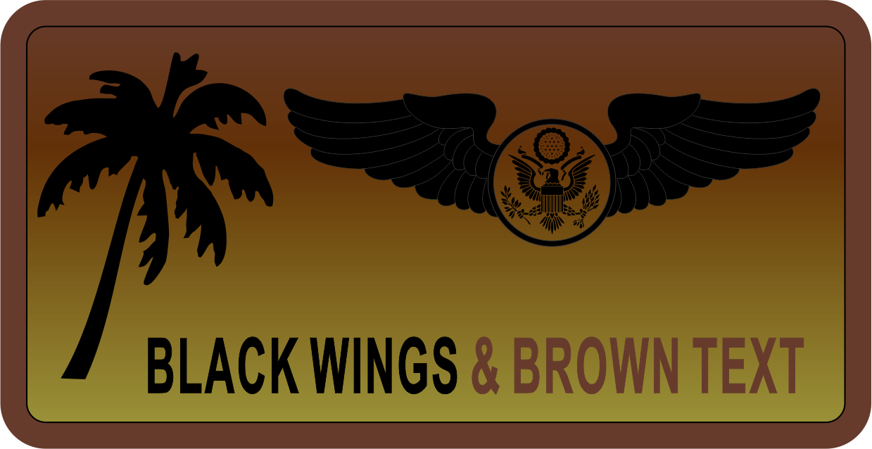 March AFB 452 AES- OCP w/Fade Name Tag - OCP, Brown, Bagby, Olive Fade Background, Black Palm Tree, Black Wings & Brown Text 100% Embroidered