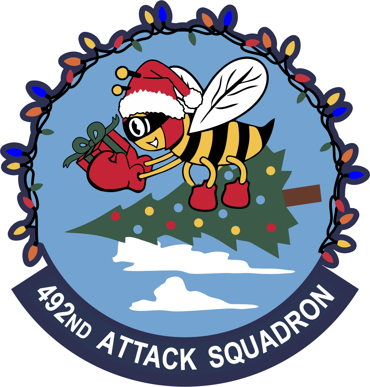 March ARB 492nd Attack Squadron - Christmas Tree with Bee 4" Riding a Tree with velcro Full Color Patch  2024