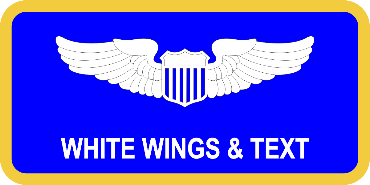 Maxwell AFB 42 ABW Name Tag  - Blue Background, AF Yellow Border, White Wing & Text with Optional Leather Backing