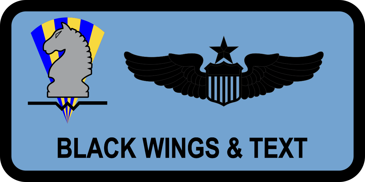 Maxwell AFB JADS - Name Tag - Lt Blue Background, Black Border, Wings & Text, Gray Knight Logo