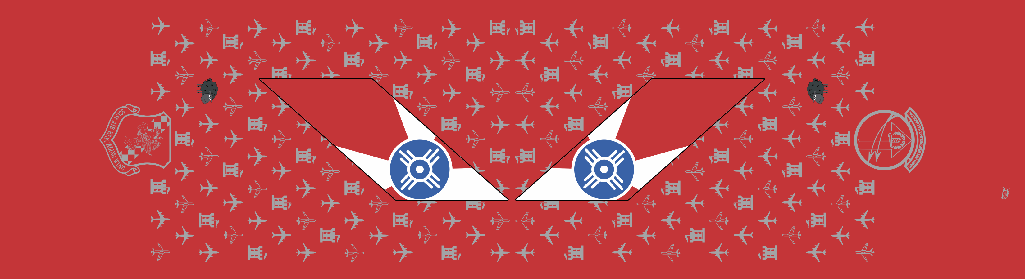McConnell AFB 924 ARS Flight Scarf. Red Background With Aircraft & Castle Pattern, Flag Of Wichita In The Center, & SQ Patches On The Ends. Size: 5.5" x 43".