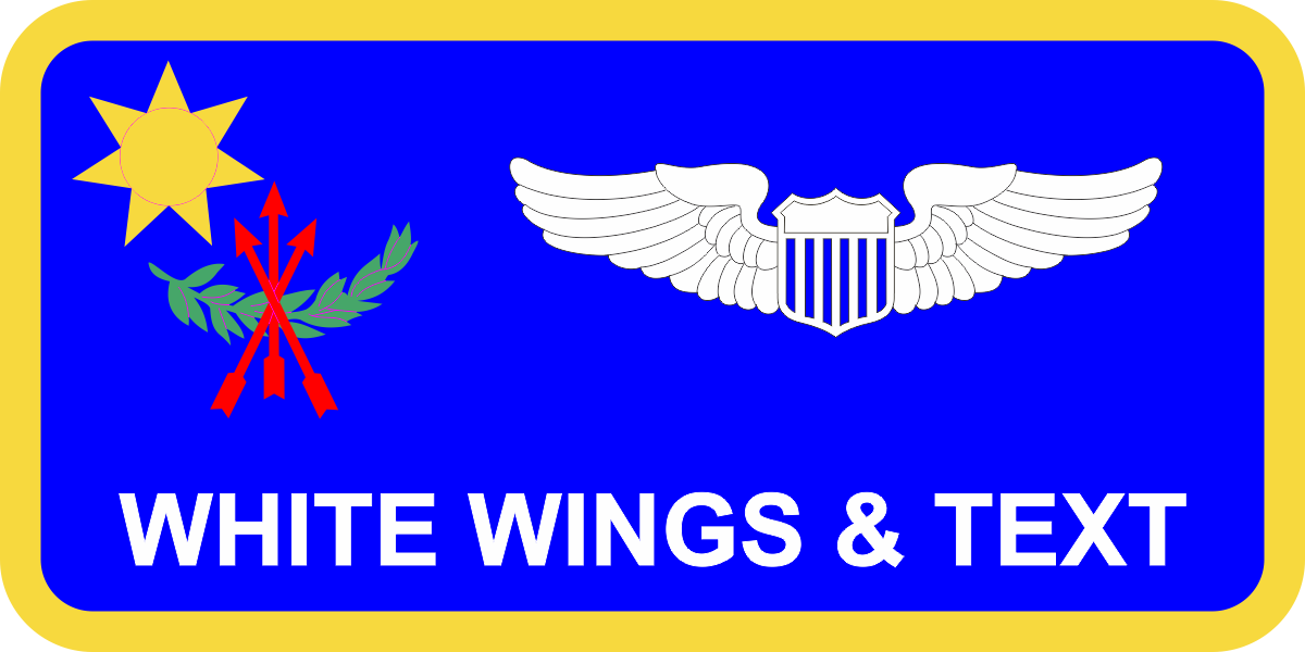 McGuire AFB 621 AMAG  - Blue Background, Yellow Border, White Wings & Text, with Sun, Olive Branch & Red Arrows Logo