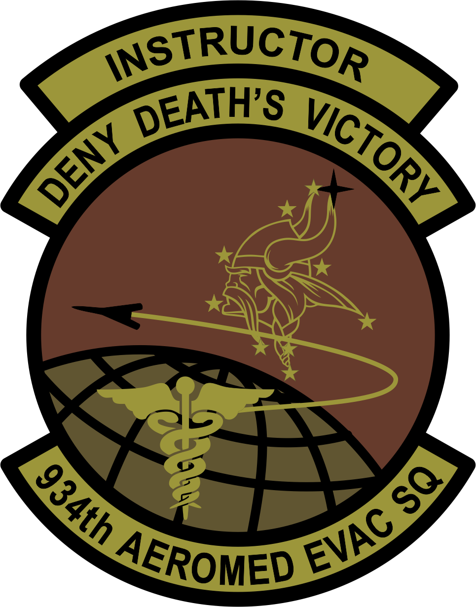Minneapolis St Paul 934 Aeromed Evac Sq Deny Death's Victory Instructor, Viking Logo, Bagby Caduceus, OCP 4" with velcro Patch