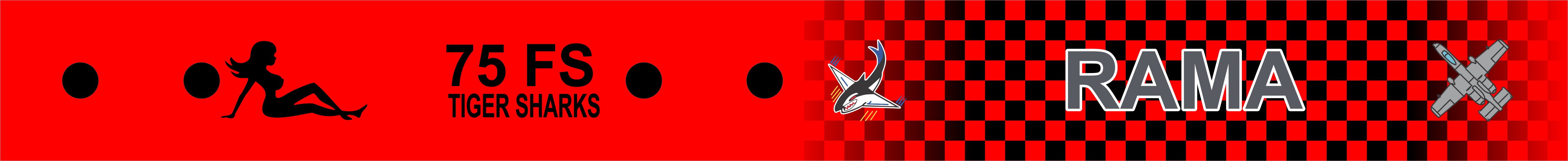 Moody AFB 75 FS Bag Tag - Red Background with Black & Red Checkerboard, Shark Logo, Gray Text.