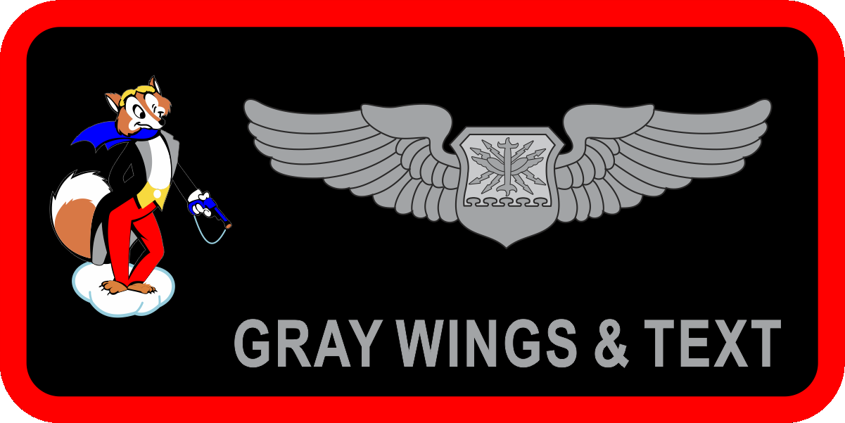 Nellis AFB 31 CTS Fox Name Tag Black Background, Red Border, White Wings & Text, with Fox Logo