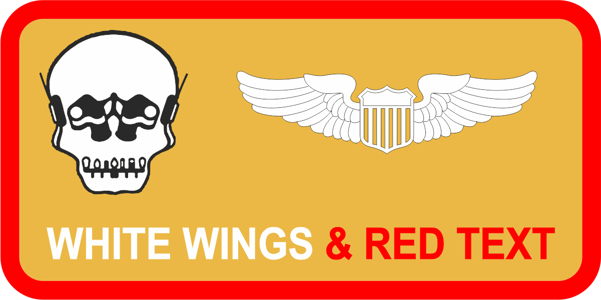 Offutt AFB 97 IS Skull Logo Name Tag - Yellow Background, Red Border, White/Black Skull Logo, White Wings & Red Text