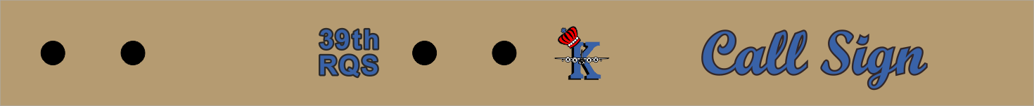 Patrick AFB 39 RQS Tan Bag Tag With "39th RQS" Text In-Between Snaps & "K Crown" Logo on the left of Name. Our standard size measures 13.5" x 1.5" when snapped.