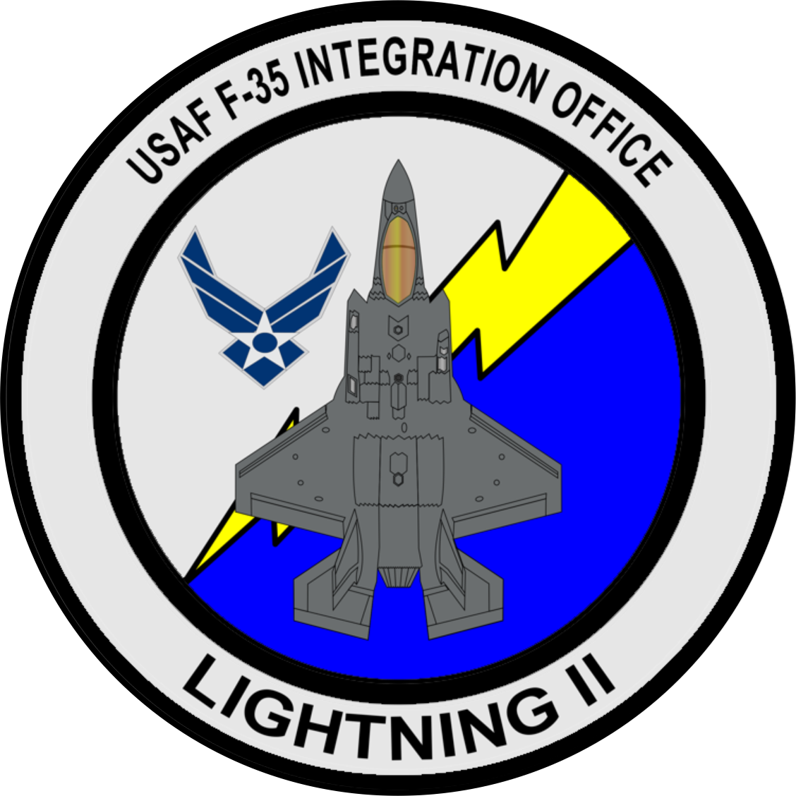 USAF Logo, Gray F-35, Yellow Lightning Bolt