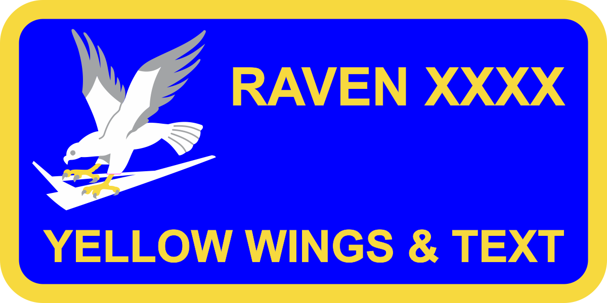 Phoenix Raven- Blue background with AF yellow border, AF yellow name and number with Security Forces logo