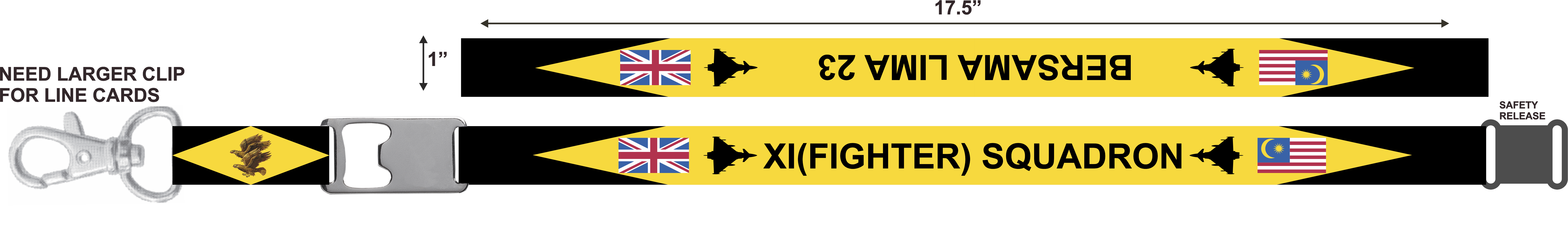 RAF Coningsby XI Fighter Sq Black/Yellow Lanyard - Yellow Background with Black Details, Black Aircraft -- Lanyard with Safety Release & Bottle Opener
