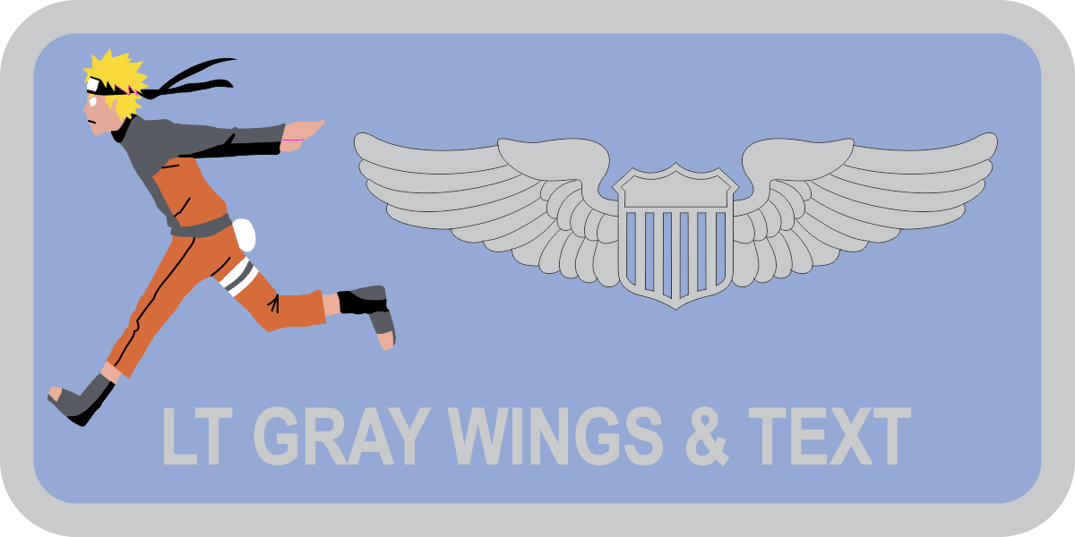 RAF Mildenhall 95 RS Naruto Name Tag - Blue Background, Lt Gray Border, Wings and Text, with Naruto Logo