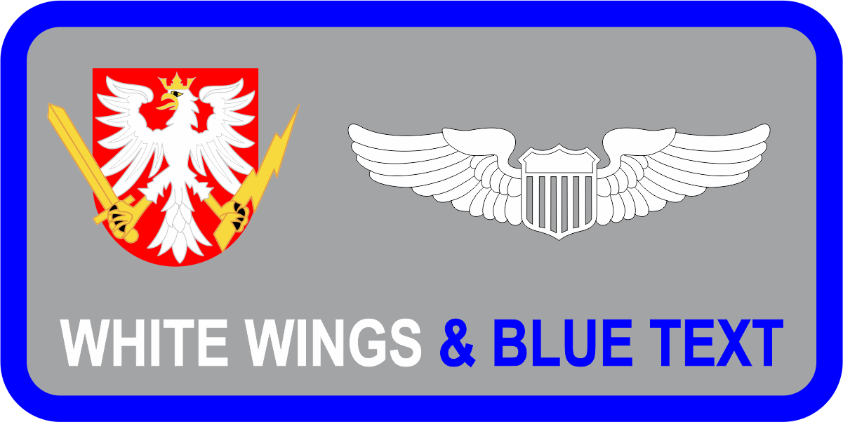 Ramstein AB 435 CRSS Name Tag -- Gray Background, Blue Border, White Wings & Blue Text with Phoenix, Sword & Bolt Logo