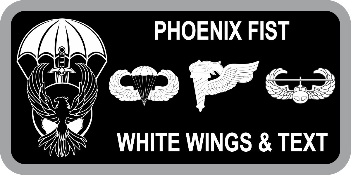 Ramstein AB 435 SFS Phoenix First Name Tag- Black Background Gray Border, Wings & Text, with Phoenix First Logo