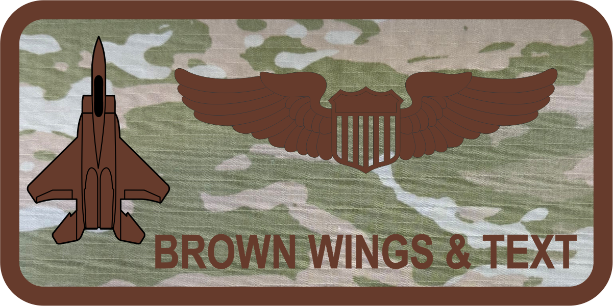 Seymour Johnson AFB 335 FS - 3-Color OCP Fabric Background with Brown Border, Brown Wings & Text with F-15 Aircraft
