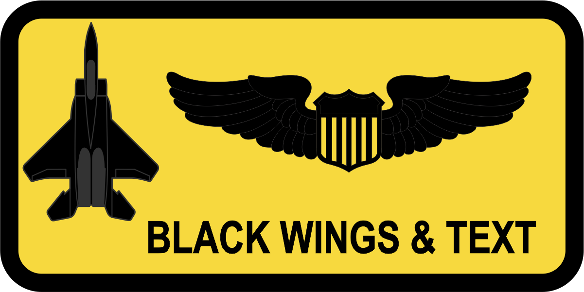 Seymour Johnson AFB 336 FS Name Tag - Yellow Background Black Border, Black Wings & Text with a Black F-15E Aircraft