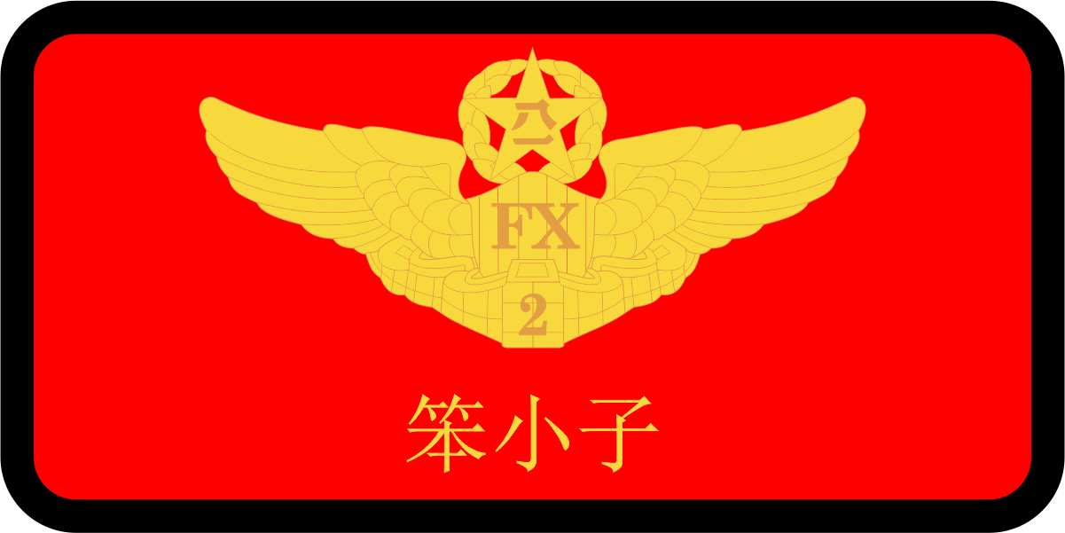 Seymour Johnson AFB 335 FS Chinese Name Tag: Red Background, Black border, Yellow Chinese Text & Wings