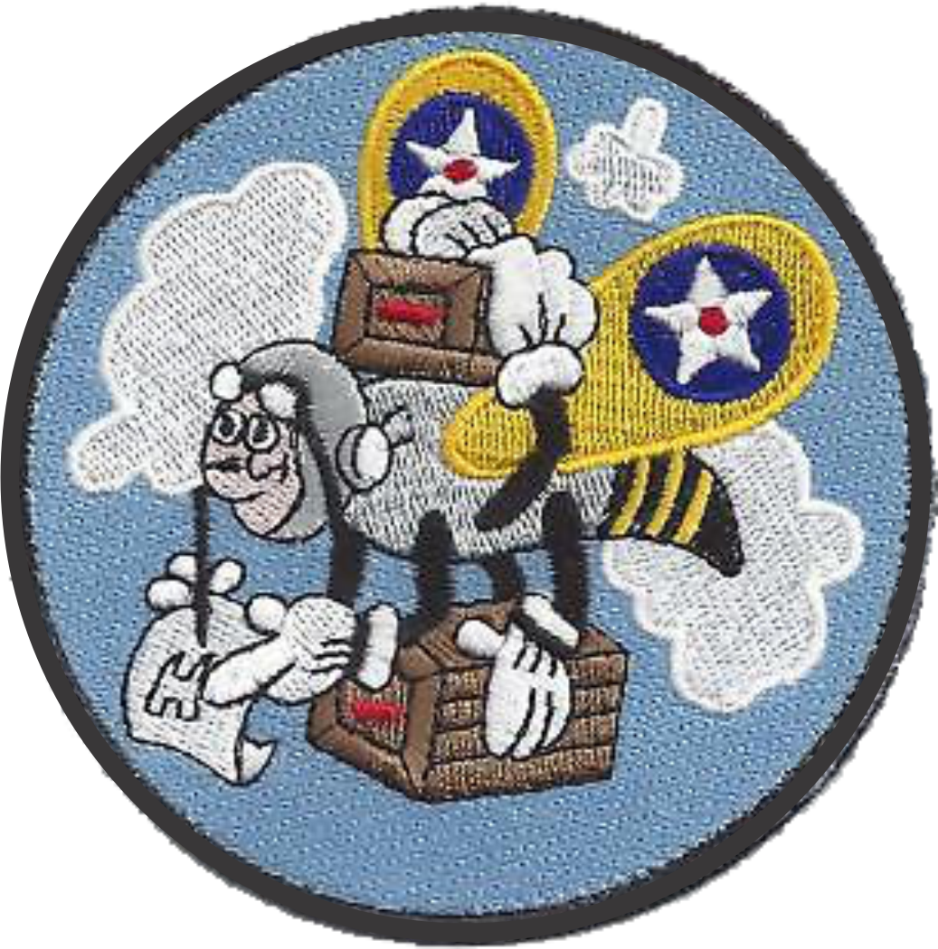 Travis AFB 21 AS Heritage Patch - Light Blue Background, Black Border, Brown Boxes, Gray, Yellow and Black Bee, Heritage Star on Bee Wings 4" with velcro