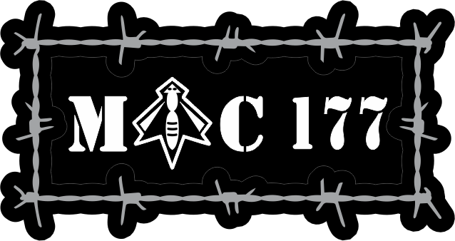 Travis AFB 21st Airlift Squadron - Black Background, White text MC 177 Gray Barbwire Pocket Tab 2"