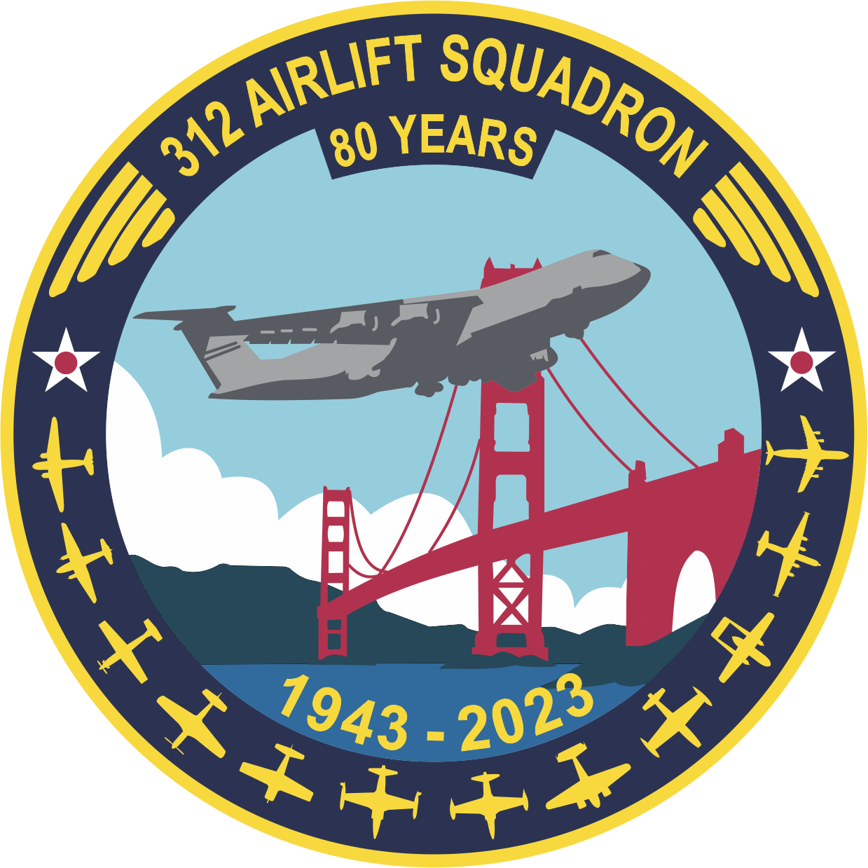 Travis AFB 312 AS -- 80 Years 1943-2023 Full-Color Embroidered Patch 4" with velcro