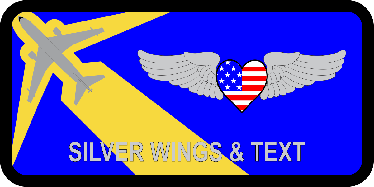 Travis AFB 6 ARS KC-46 Name Tag- Blue Background, Black Border, Yellow Landing Stripe, Gray KC-46, Gray Wings & Text  - Optional Leather Backing