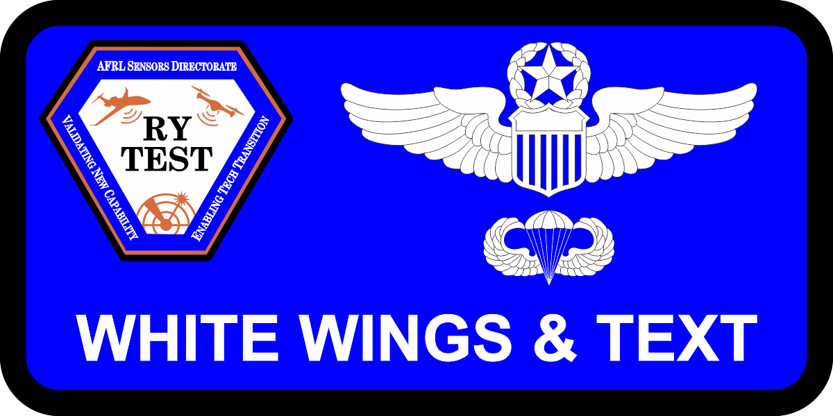 Wright-Patterson AFRL RY Test Name Tag -   AF Blue Background with Black Border with White Wings & Text, RY Test Logo