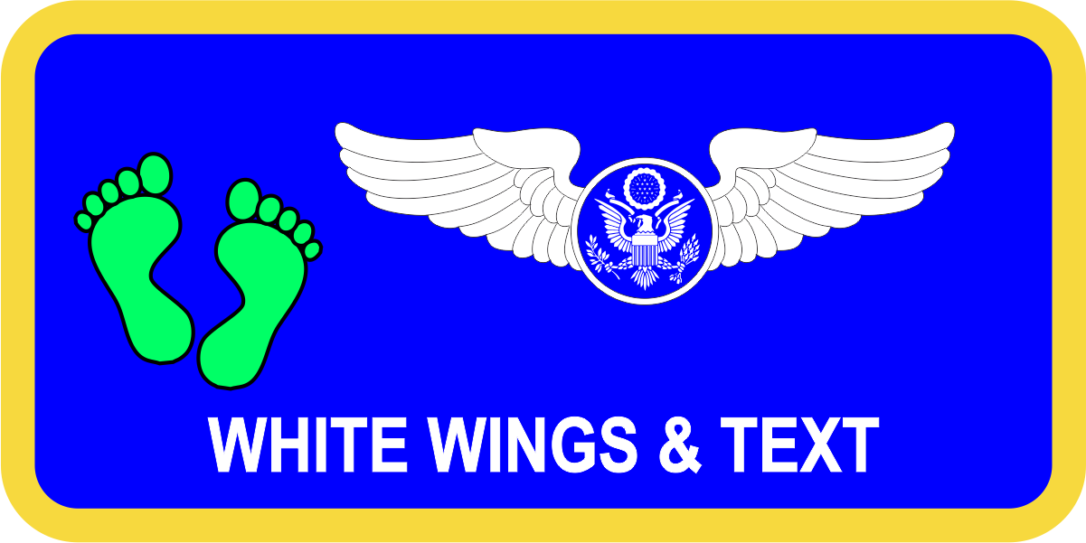 Patrick AFB 301 RQS - AF Blue Background, Yellow Border, White Wings, and Text with Green Feet Logo