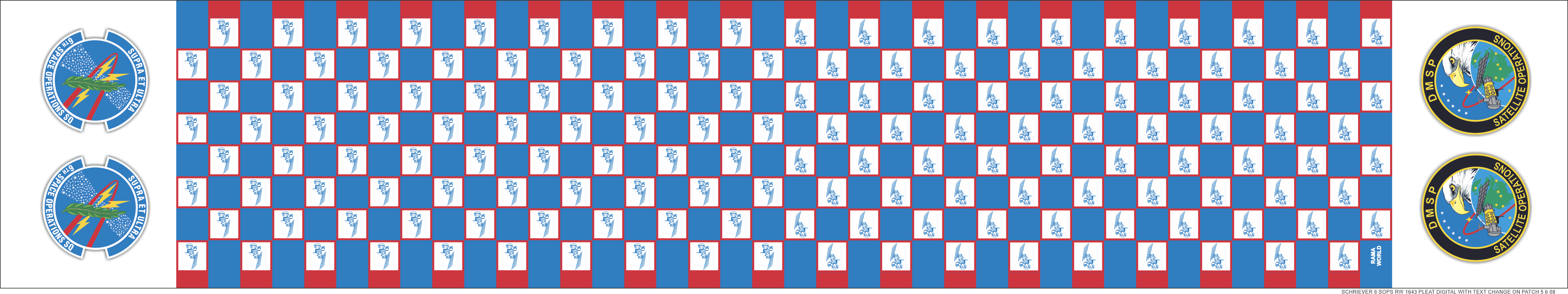 Schriever AFB 6th Space Operations Sq Scarf - Blue, White & Red Checkerboard with Blue Satellites within the Checkerboard, Patches on Ends