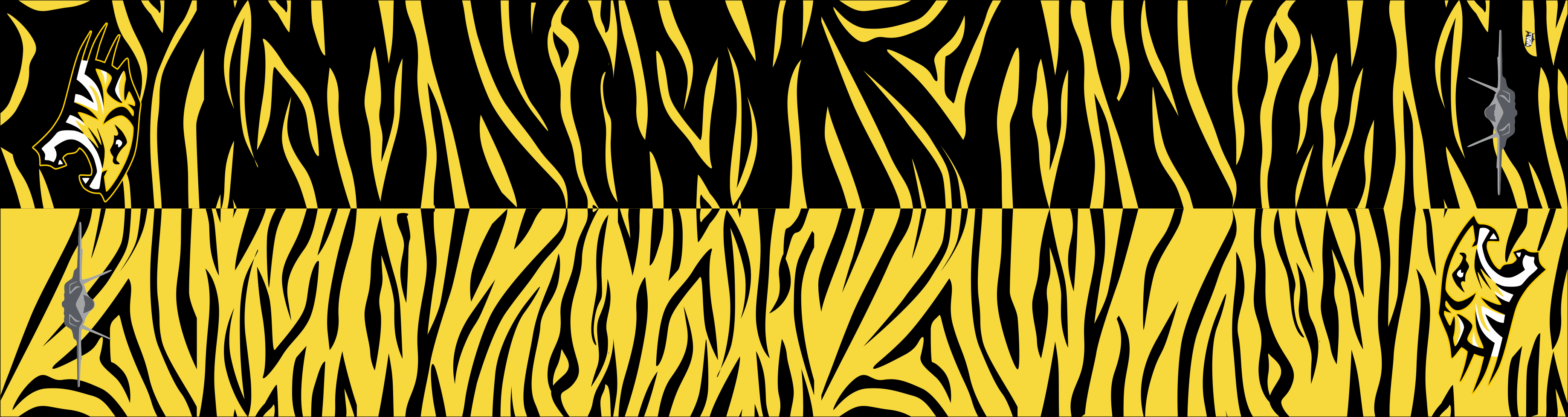 RAAF Base Williamtown 2 Operation Conversion Unit Flight Scarf. Black & Yellow Tiger Stripe Pattern With a Tiger Emblem on One End & an F-22 on the Opposite End. Size: 6" x 48".