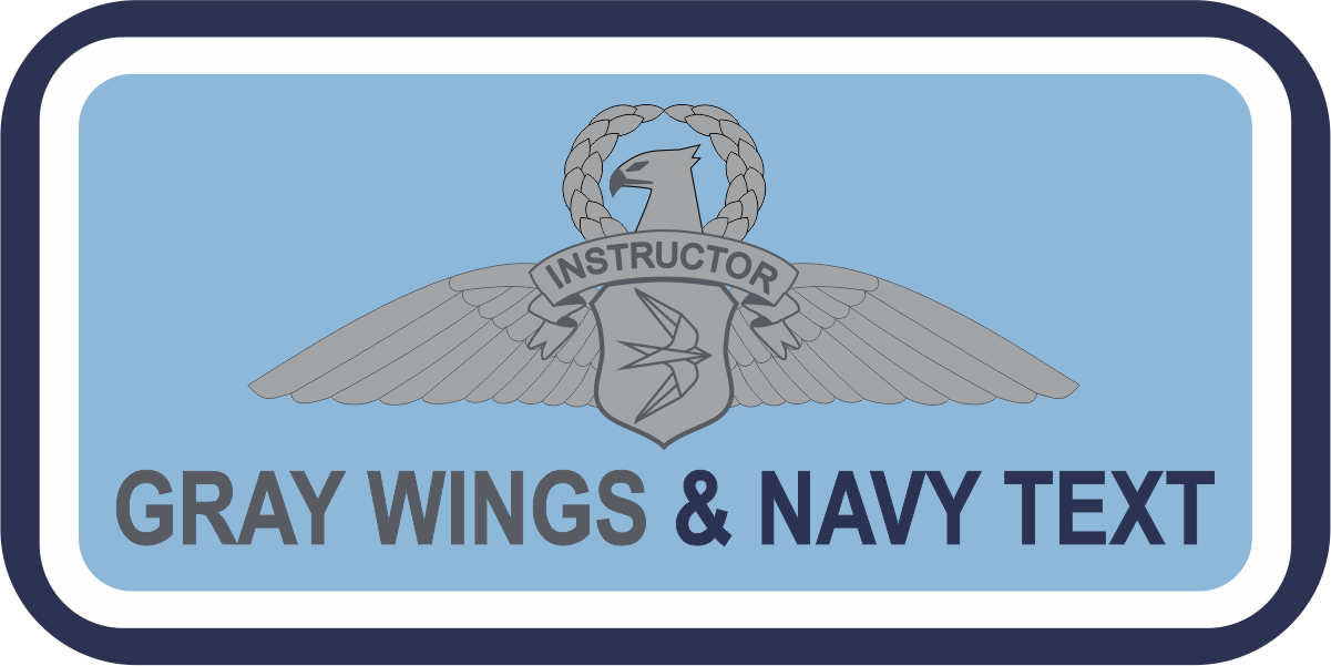 Metrea Name Tag - Lt Navy background Navy Border, inner border White, Gray Instructor Wings &  Navy Text