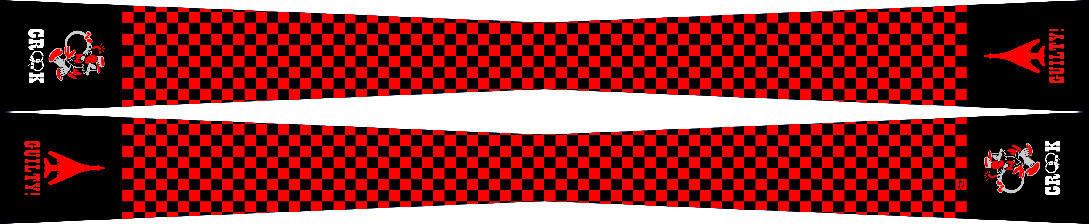 Dyess AFB 345 BS Flight Scarf. Black & Red Checkered Pattern, SQ Patch logo & B-1B Aircraft On The Ends Of The Scarf. Size: 4" x 2" x 48".