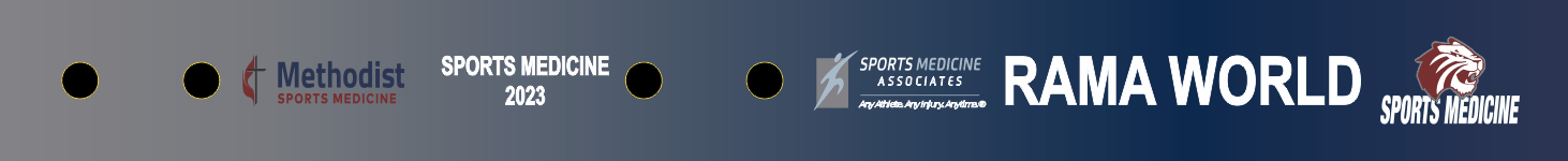 Trinity University Sports Medicine 2022 Gray Fading To Navy Bag Tag With TheMethodist Logo & "Sports Medicine 2022" In-Between Snaps, "SMASA" Logo On The Left Of Name & The Trinity U Logo On The Far Right.