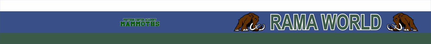 Western Center Academy Bag Tag. Navy Blue With White & Forest Green Accents, "Western Center Academy" Text In-Between Snaps, Mammoth Logo On The Left & Right Of Name. Our standard size measures 13.5" x 1.5"