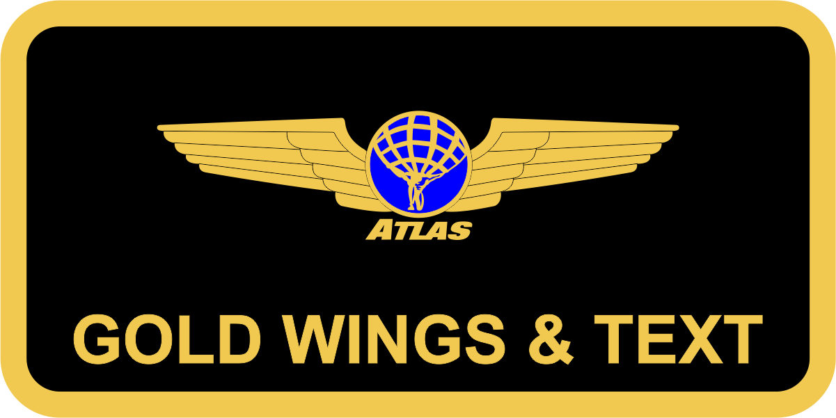 Atlas Air Name Tag - Black Background, Gold Border, Gold Altas Air Wing & Text