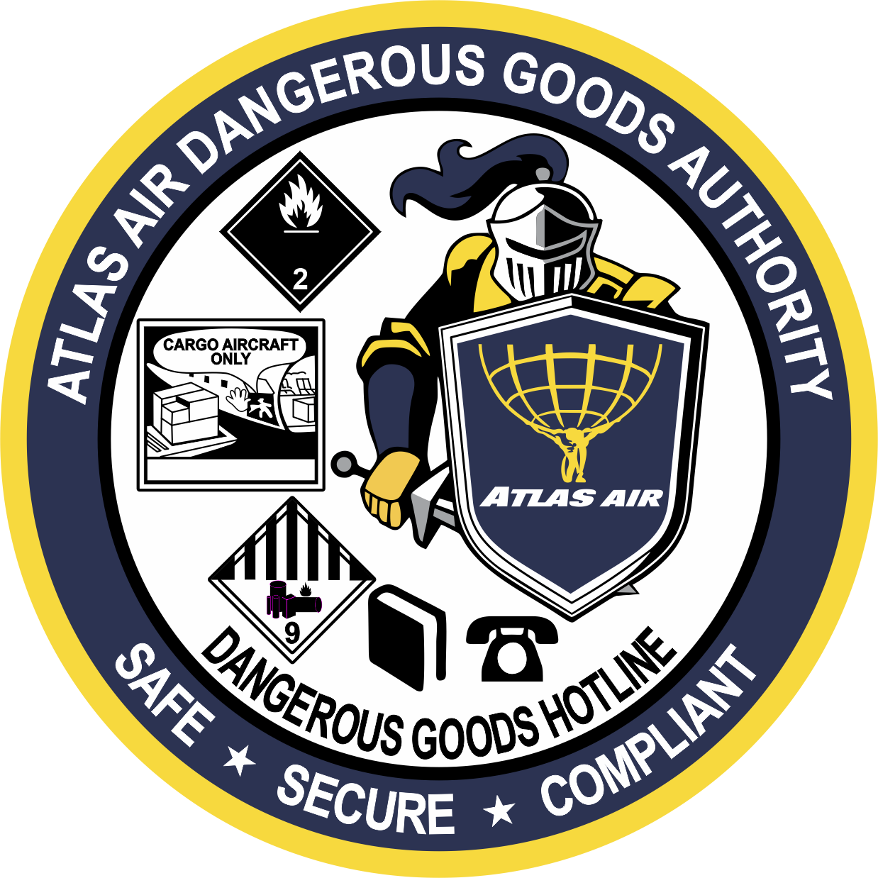 Atlas Air Patch - Dangerous Goods Authority Safe, Secure, Compliant, Dangerous Goods Hotline 4" with velcro